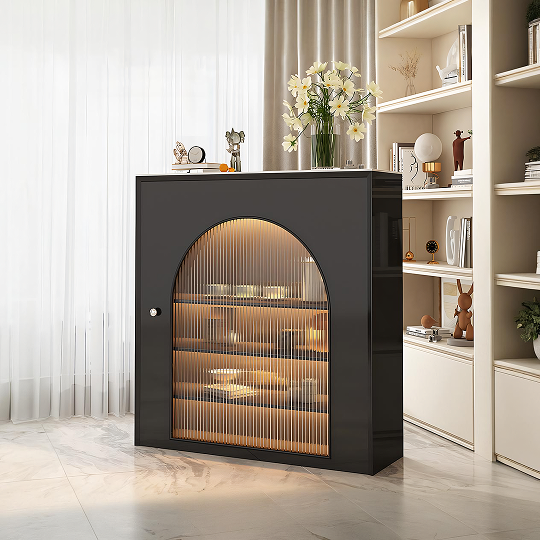 Amanda Slim Sideboard With Glass Door, Black