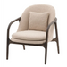Details - Chair upholstered in Boucle with dark stain wood frame and padded seat pad.