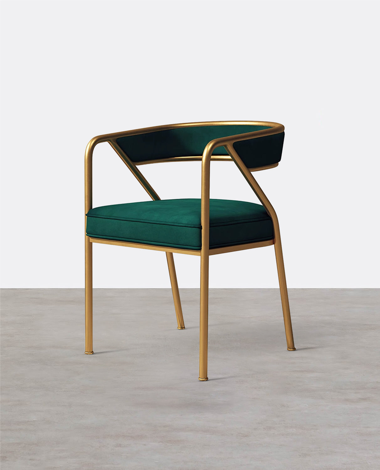 Product name Ahmed Dining Chair Material Velvet, Painted Steel Dimensions More details below Color Grey, Blue, Red, Pink, Yellow, Green, Black, Gold Assembly Need No Caring instructions Wipe with a damp cloth if necessary Style Contemporary & Modern Notice The slight color difference may...