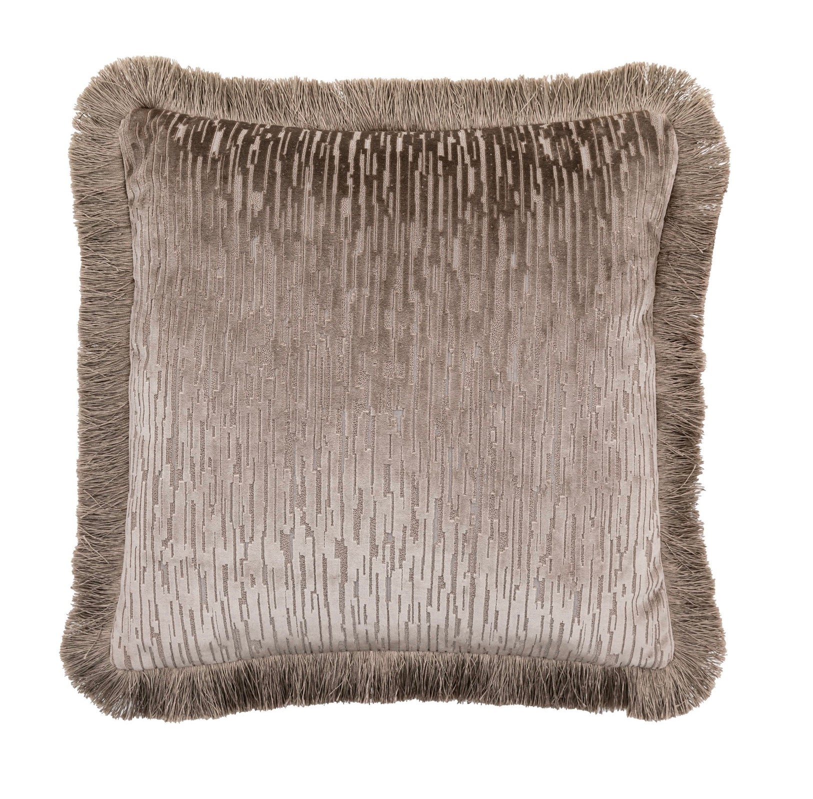 A luxurious textured velvet cushion in a beautifully rich tone, with soft fringed trim and fibre interior.