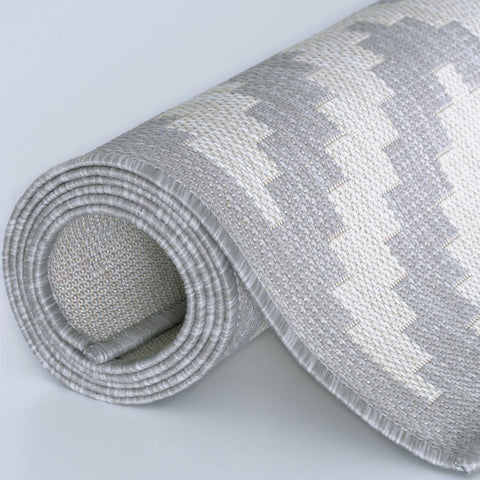 This Grey Outdoor Rug for the Garden and White dry in a jiffy which makes them very easy to clean. It is weather-proof and UV protected. Therefore, it does not smell under changing weather conditions and colours will not fade in the sun. Their flat pile means that you can stand your patio furniture on them too.