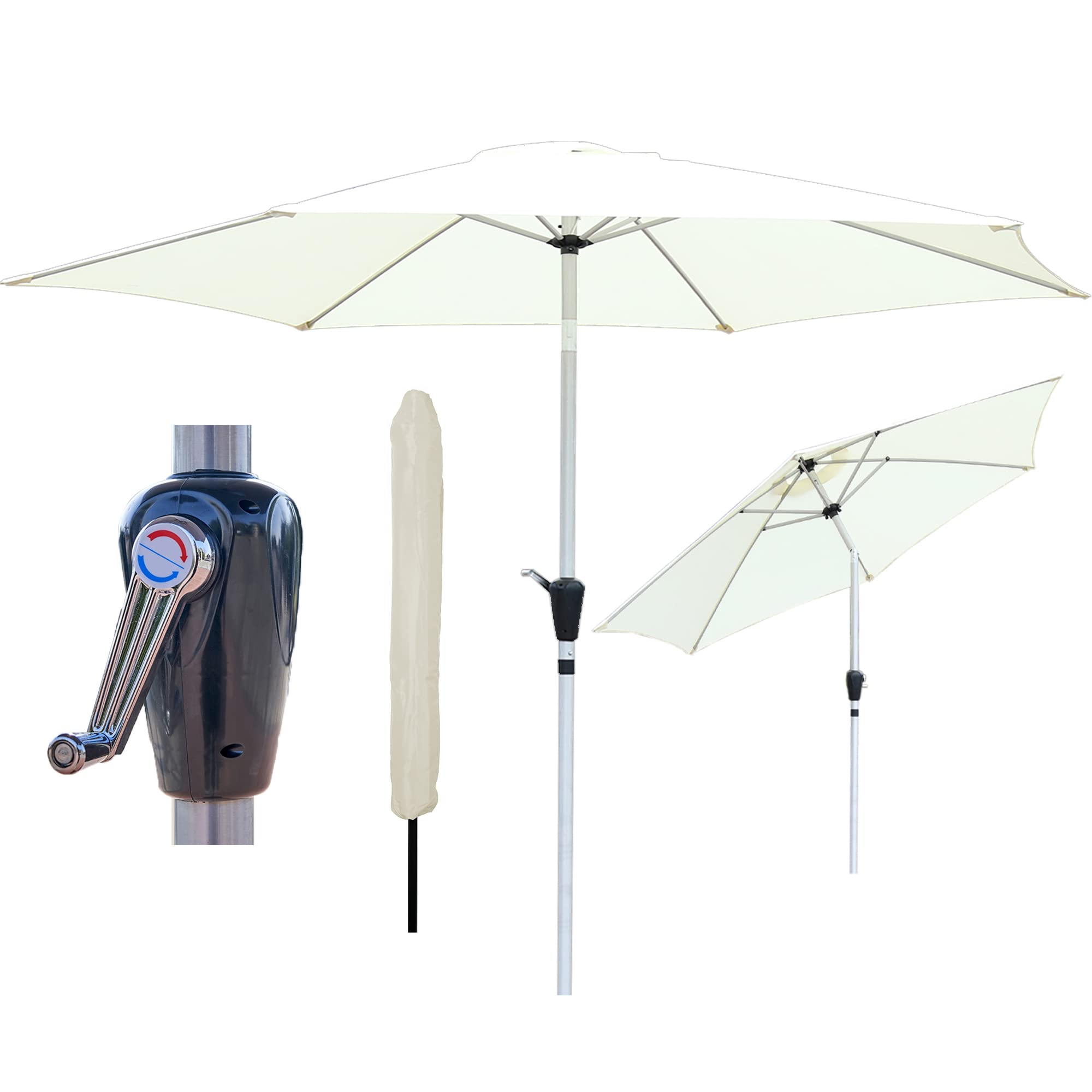 Features WATERPROOF AND UV-RESISTANT: The GlamHaus lightweight Cream Coloured tilting aluminium patio umbrella is made from extra strong 180G/M2 100% polyester fabric with top-air ventilation. The fabric offers UV40+ protection and is fully water resistant. all these features are aimed at keeping you cool and protecting you from damaging UV rays or rain. EASY TILT OPERATION AND BONUS PROTECTION COVER: Easy assembly in seconds, simply remove from the carton connect the two poles together and you are good to go. Fitted with a simple button touch tilt option to offer greater shading from the sun. Also with the added bonus...