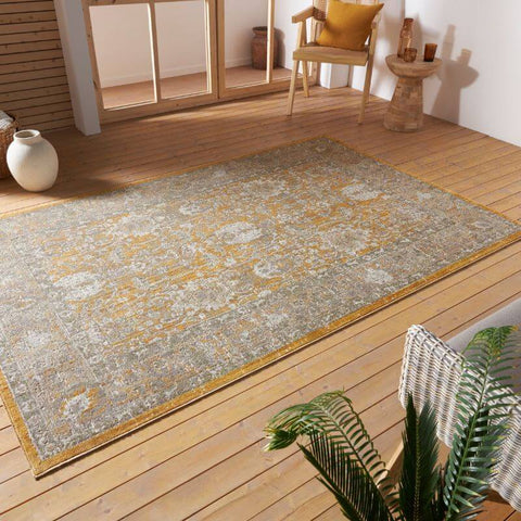 Bring timeless charm and modern practicality to your space with this beautifully distressed vintage-style rug. Designed for both indoor and outdoor use, it features a classic medallion center surrounded by symmetrical floral motifs and a decorative border. With a low pile height of just 0.3 cm, it’s robot vacuum-friendly, foldable, and easy to care for—simply machine wash at 30°C when needed. Crafted from durable, weatherproof, and UV-resistant polypropylene, this rug suits all floor types, including underfloor heating systems. Whether placed in the living room, garden, balcony or hallway, it brings a modern look and long-lasting performance.