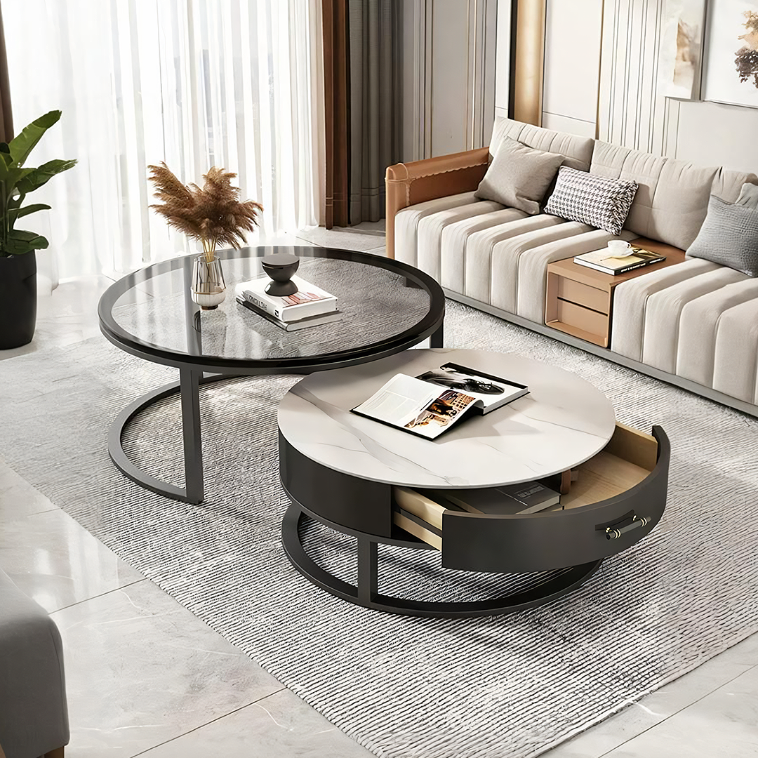 | Product name | Kev Nesting Coffee Table With Ottoman, Glass |
