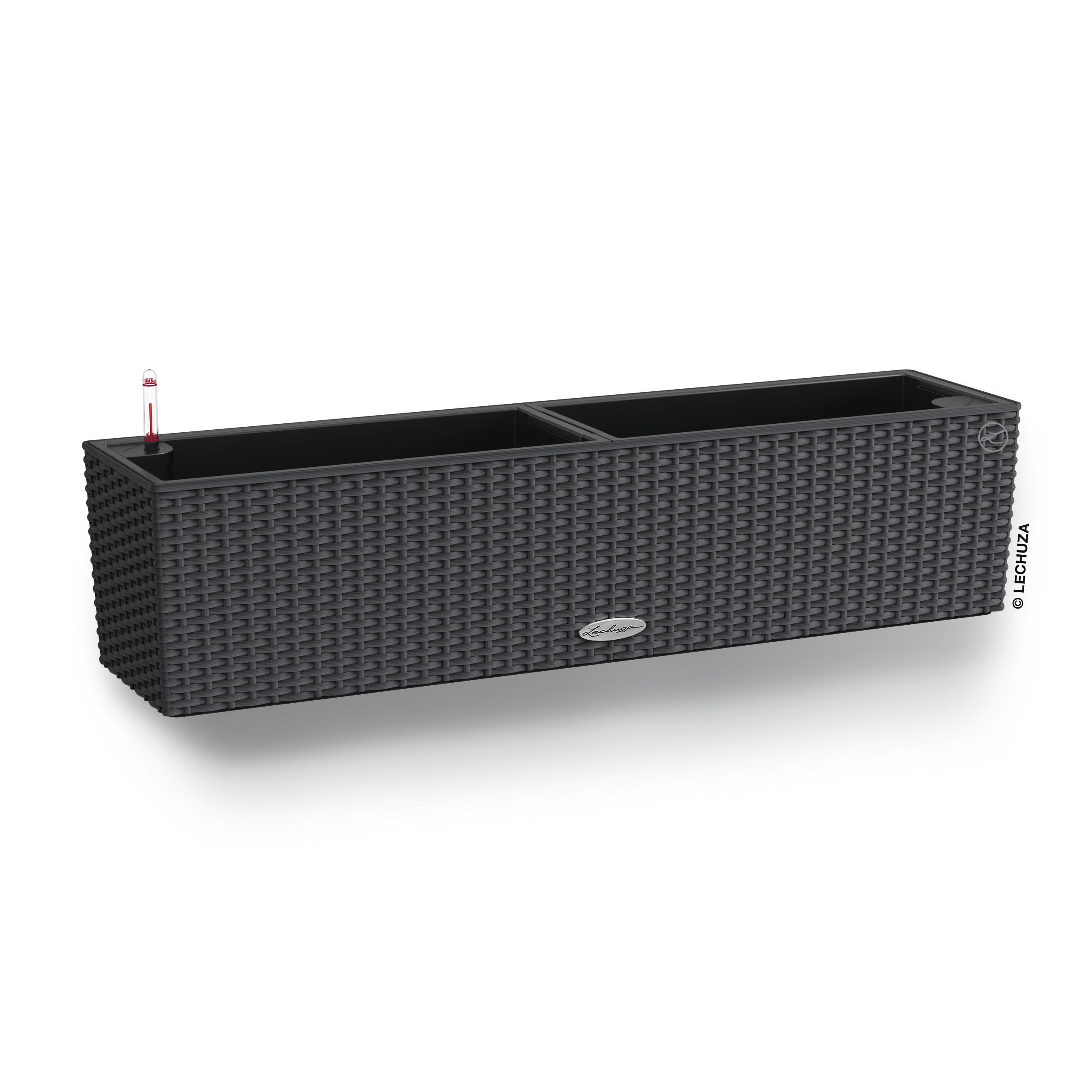 Lechuza Self Watering Plant Pot BALCONERA Cottage 80 Indoor and Outdoor Flower Rattan Look Plastic Plant Pot and Window Box with Drainage Hole H19 L80