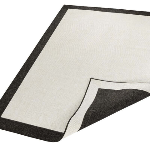 Elevate your indoor and outdoor spaces with the Panama Reversible Rug, a stylish and practical addition to any home. Made from durable polypropylene, this flatweave rug features a classic bordered design in black, grey, or brown tones—perfect for creating a clean, structured look.