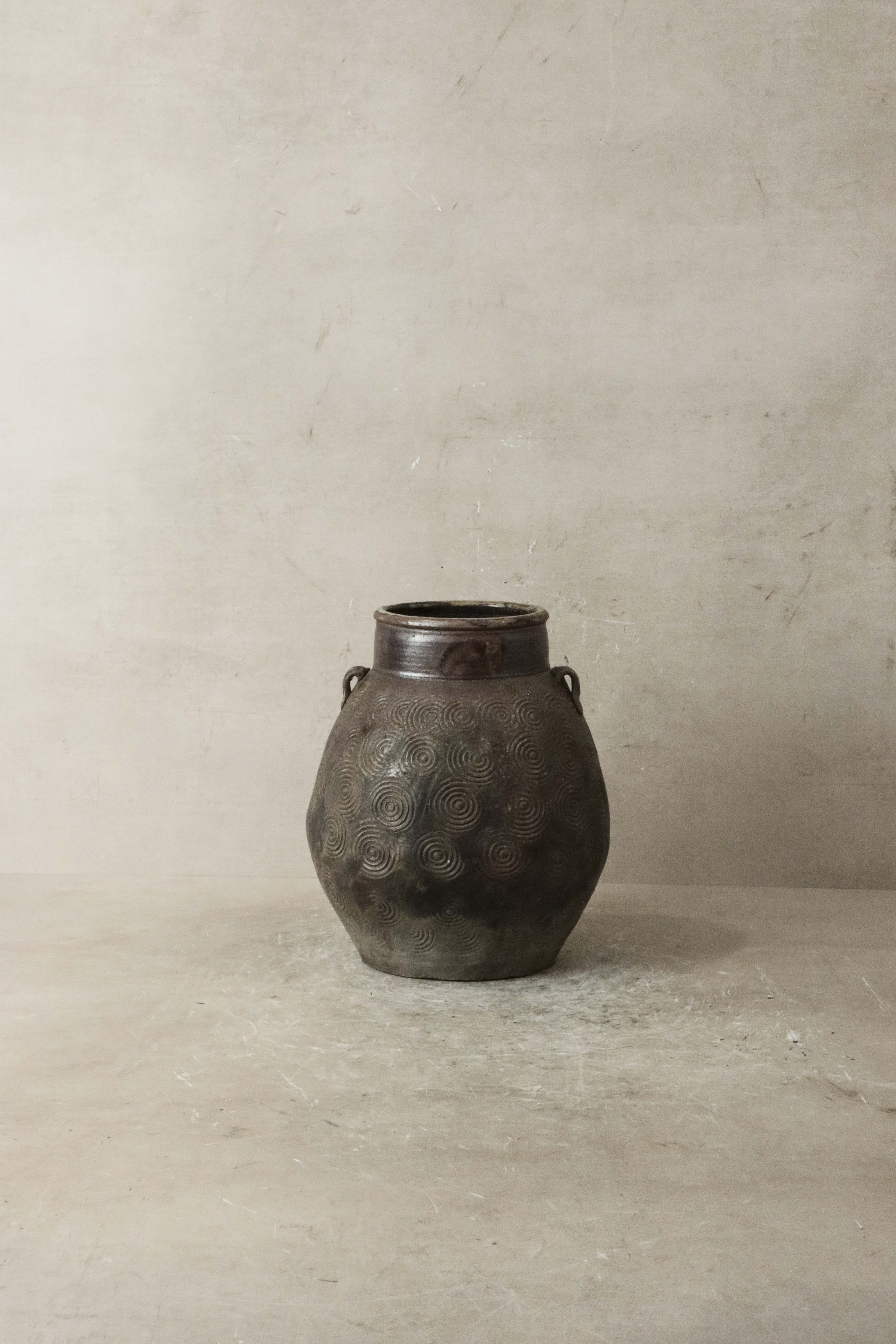 Believed to originate from the late 19th to early 20th century, this exquisite Chinese antique preservation vessel in the distinguished Yunnan style, served as a repository for water or vinegar.