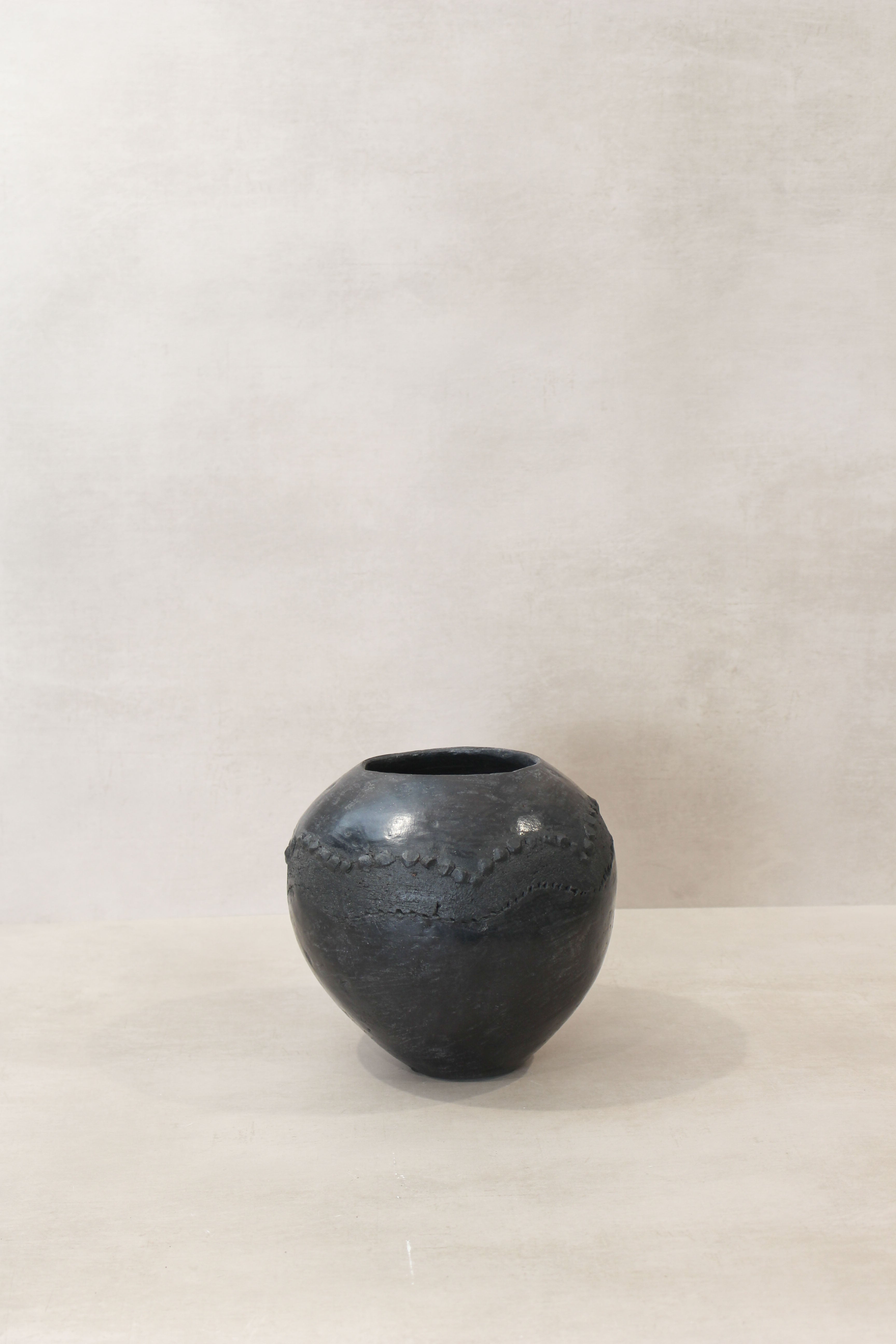The Zulu pot, originating from South Africa, holds a distinguished role in the traditional practices of the Zulu people, primarily as vessels for the storage and consumption of beer. Crafted meticulously from clay harvested from the banks of local rivers, these pots undergo a meticulous hand-shaping process, followed by careful smoothing, culminating in firing over open-air fire pits. This time-honored technique not only imparts durability but also infuses each vessel with a distinctive character reflective of its artisan's cultural heritage, rendering every pot a unique testament to the rich tapestry of Zulu tradition.